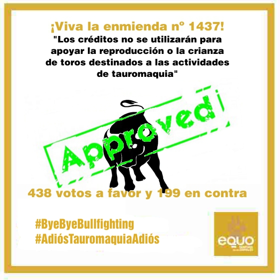 EQUO Extremadura comunica su alegría por el importante paso que el Parlamento Europeo ha dado en favor de la ética y de la justicia con la aprobación de la enmienda 1437 presentada por Los Verdes/ALE Para EQUO que «los créditos no se utilicen para apoyar la reproducción o la cría […]